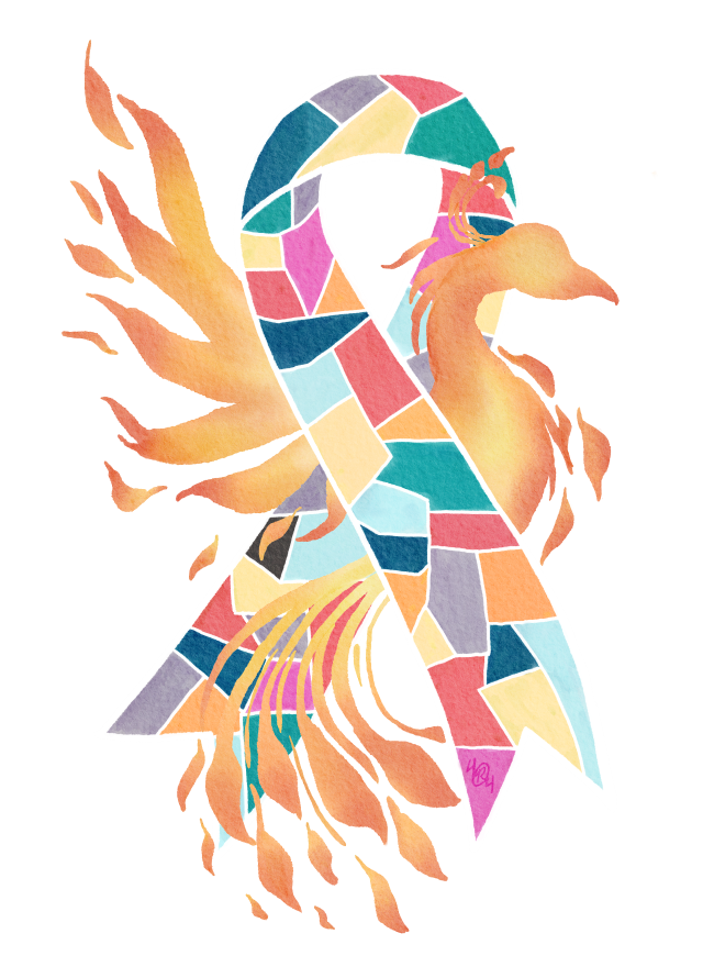 I wanted a DID ribbon design to put on my car. With some thought, this is what I came up with. The phoenix is symbolic of what it means to have DID; the disorder comes from extreme childhood trauma. The disorder rises from the ashes of that trauma to protect the people that have it.
